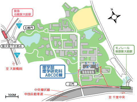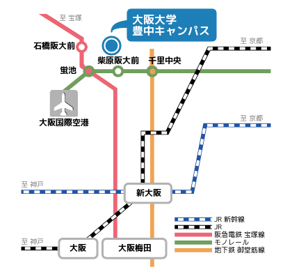 千里中央(大阪モノレール)→柴原阪大前下車 - 梅田(JR大阪より徒歩4分):